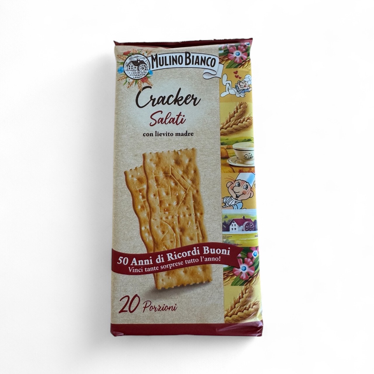 Mulino Bianco Cracker Salati to klasyczne włoskie krakersy o delikatnym smaku i chrupiącej teksturze, wypiekane z naturalnego zakwasu i wysokiej jakości składników. Dzięki swojej uniwersalności doskonale sprawdzają się jako przekąska, dodatek do serów, wędlin czy zup.